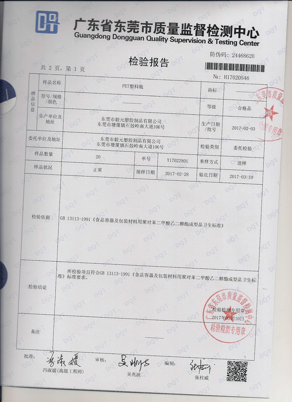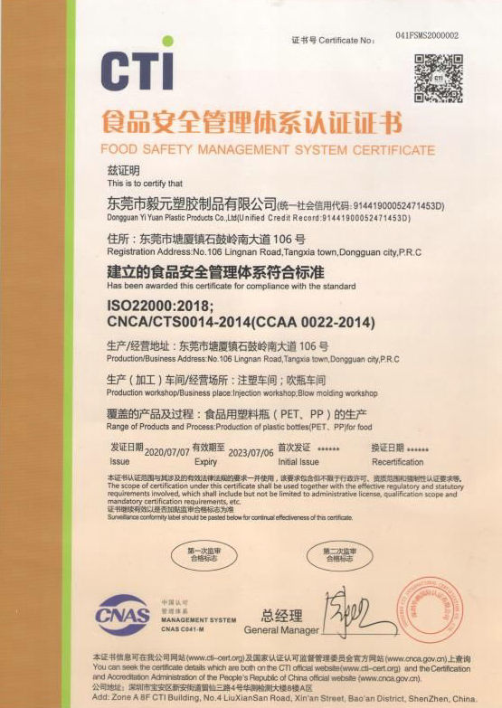 - 先后取得了食品包裝生產(chǎn)許可,ISO22000等生產(chǎn)資質(zhì)。車間為封閉式的潔凈車間,引進(jìn)多臺自動化吹瓶設(shè)備,大大提高了生產(chǎn)效率和產(chǎn)品的優(yōu)質(zhì)率。